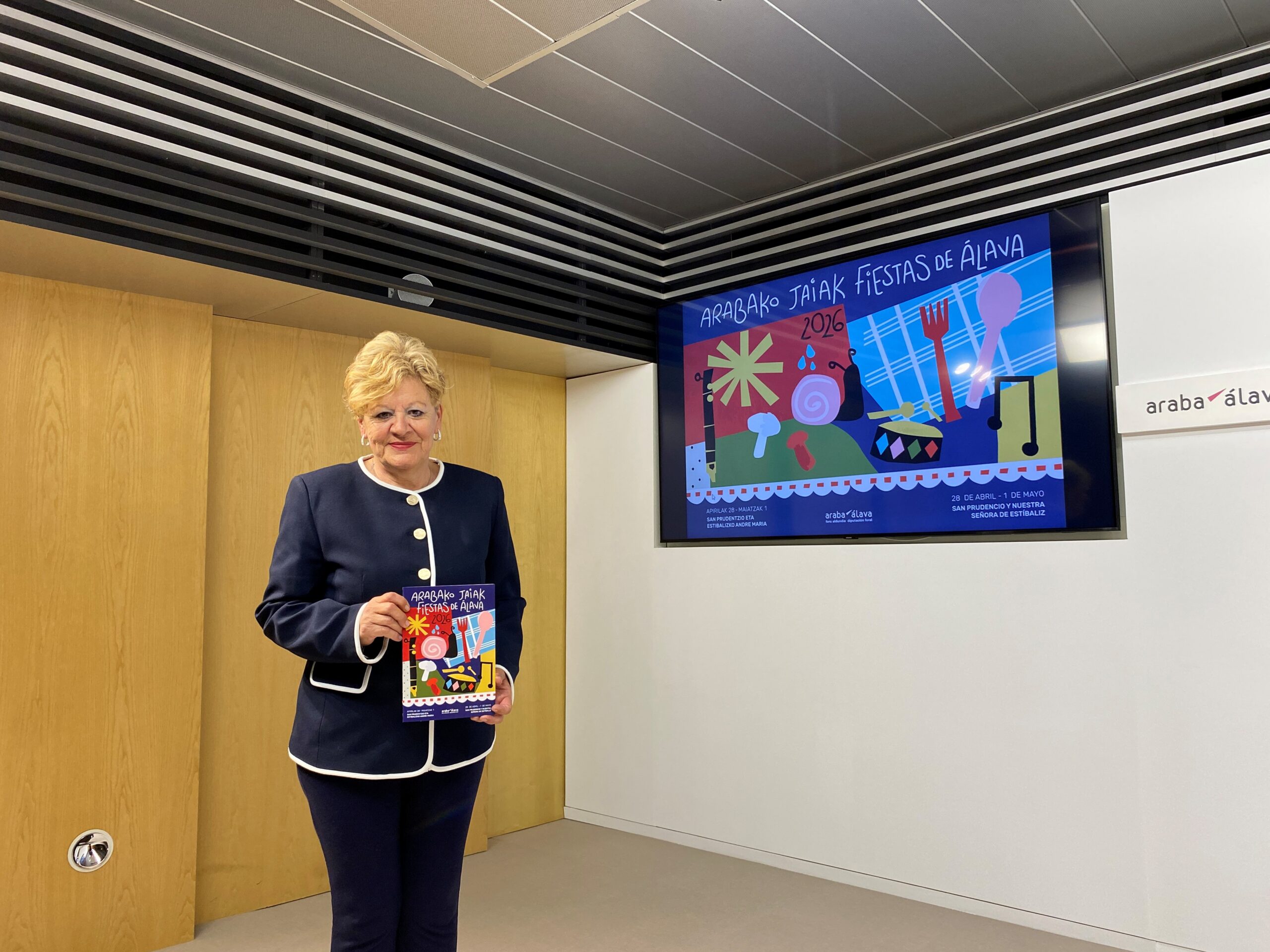 Vitoria-Gasteiz, 16 de abril de 2026. La diputada foral de Cultura y Deporte ha presentado la programación de las fiestas de San Prudencio y de la Virgen de Estibaliz. Las fiestas se celebrarán del 24 de abril al 1 de mayo, con una amplia oferta que combina tradición, cultura y música.